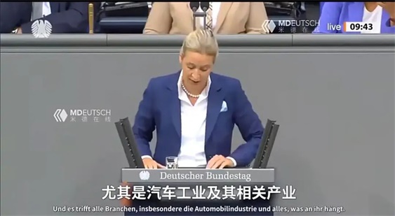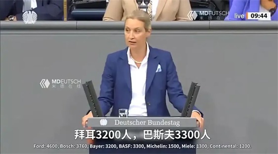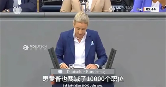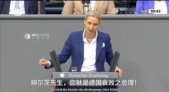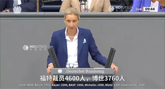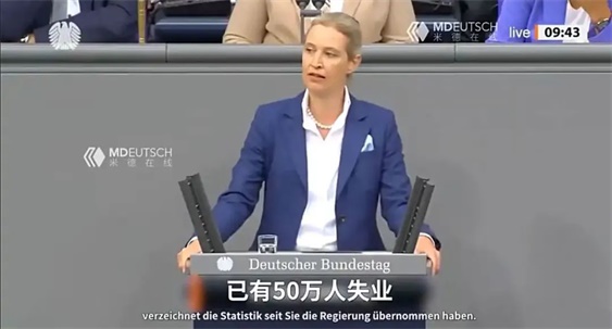 德国选择党党首魏德尔女士嘲讽道:德国总理舒尔茨在不到两年的时间里,帮助美国"干掉"了德国的制造业。