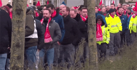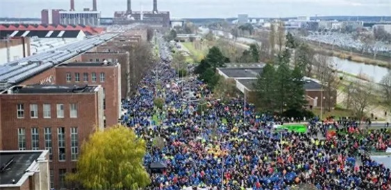 德国大众的10万工人正在罢工游行,抗议大众的降薪、裁员、关闭工厂。