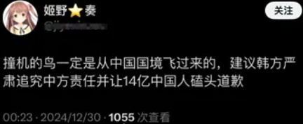 历史的经验和教训告诉我们,别人惹不惹我们,只取决于我们强不强大,而不是我们文不“文明”。在殖人那里,就连韩国飞机失事,都能赖到中国头上,别人想惹我们,借口还不是想找多少就找多少吗?所以,惹没惹不是客观的,而是主观的,不是你觉得没惹就没惹了,而是别人觉得你惹了没有。别的不说,特朗普要把加拿大并入美国,是因为加拿大惹了美国了吗?