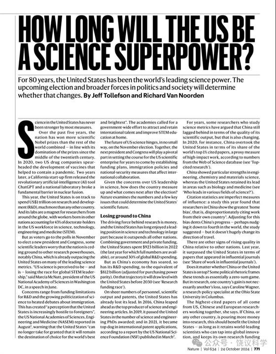 考虑到这篇文章没有提到的:生命科学里面的植物生物学,中国在经费投入和研究产出都远高于美国。