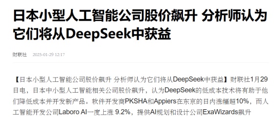 第一件事是自从deepseek出来,日本的一些小型人工智能公司,股价最近大涨了一波!