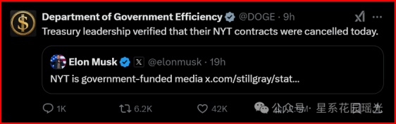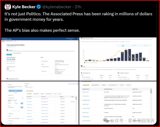 更讽刺的是,自称美国第四权的媒体,尤其是“权威大媒体”,居然一直在从白宫USAID拿钱。马斯克在20小时前公布的调查结论是,一直自称纯粹私有的纽约时报,在从白宫领取奖金。他查到的单笔转账最近的一次,是2024年8月的410万美元(约3000万RMB)