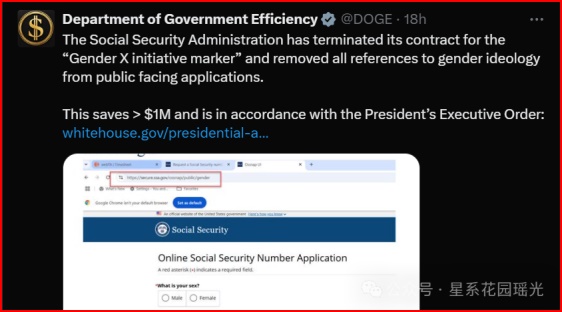 美国社会保障局在2月5日终止了其“性别X倡议标志”的合同,并从面向公众的申请中删除了所有提及性别意识形态的内容。