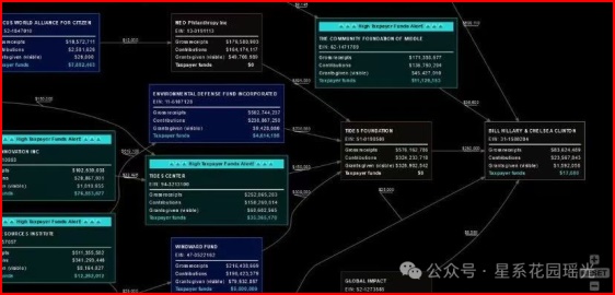 马斯克团队绘制了一张资金的巧妙流转图:凭着该图描绘的骚操作,克林顿的女儿,切尔西克林顿,轻松躺平在家,偶尔开开舞会…就从美国国际开发署,获得了8400万美元。