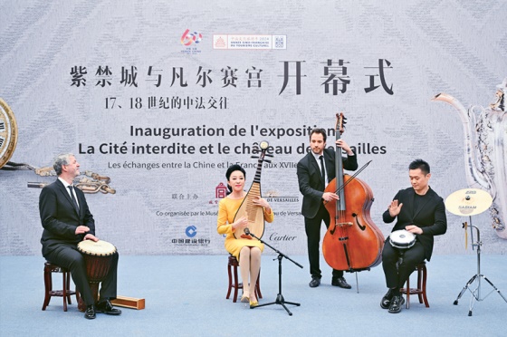 图为2024年4月1日,在北京故宫博物院举行的“紫禁城与凡尔赛宫——17、18世纪的中法交往”展览开幕式上,中法艺术家合奏。中新社记者 田雨昊/摄