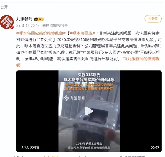 在昨日的 315 晚会上,垄断互联网平台的黑幕再次被无情撕开。啄木鸟家庭维修,这个号称在国内300 多个城市开展业务,坐拥10万名在线接单维修师傅的行业巨擘,被央视 315 晚会揭露存在严重的维修乱象。