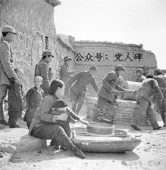 当时处于战争的艰苦年代,一方面要恢复战争创伤,另一方面要积极支前,群众缺粮严重,吃的多是吃花生壳磨成的粉末,连同麦片煮食充饥。为帮助群众度过饥荒,部队每人每天少吃三两小米送给群众。