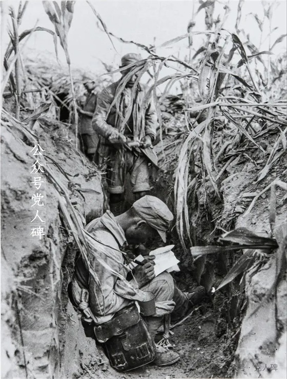 1948年7月2日,睢杞战役中,华野某部参谋在战壕中向上级汇报前线突击队情况。邹健东 摄