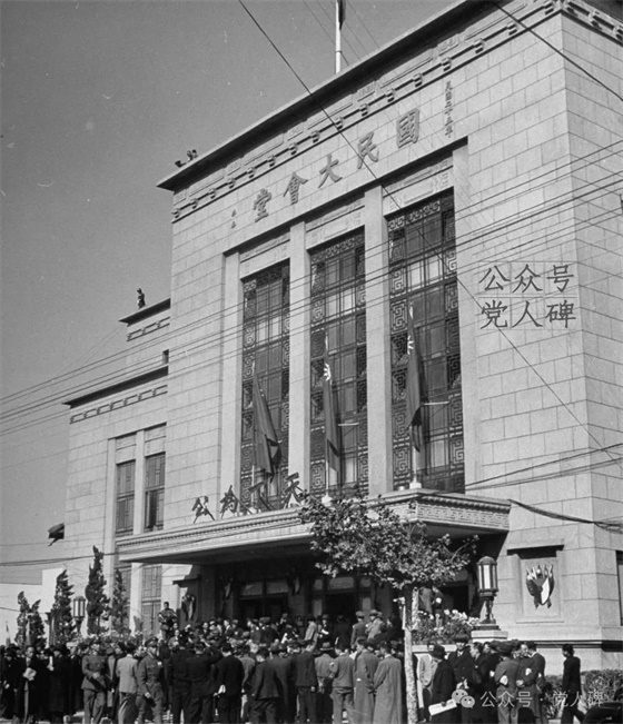 1946年12月,南京,伪“国大”代表们云集会场外