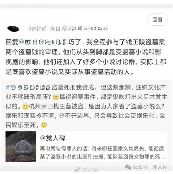 结果就遭到某盗墓小说粉丝的网暴(当然我也跑不了),搞得他不得不给我打电话,要求我删帖。那个时候的网络风气,由此可见一斑。但作为严肃的历史学人,我必须记录这件事,因为不斗争,就更没有道理了!