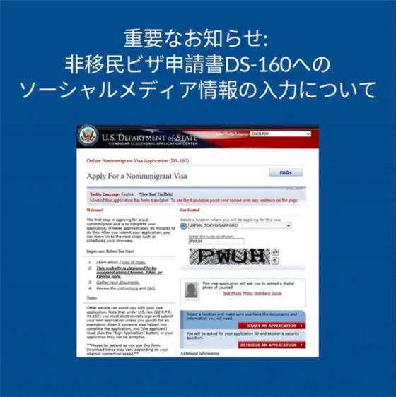 也就是说所有的日本人想申请赴美签证就要一次性的把他在脸书啊、油管啊、INS呀、领英呀等等等等上的内容,一次性的提供给美国政府,以供美国政府进行所谓的安全审查。