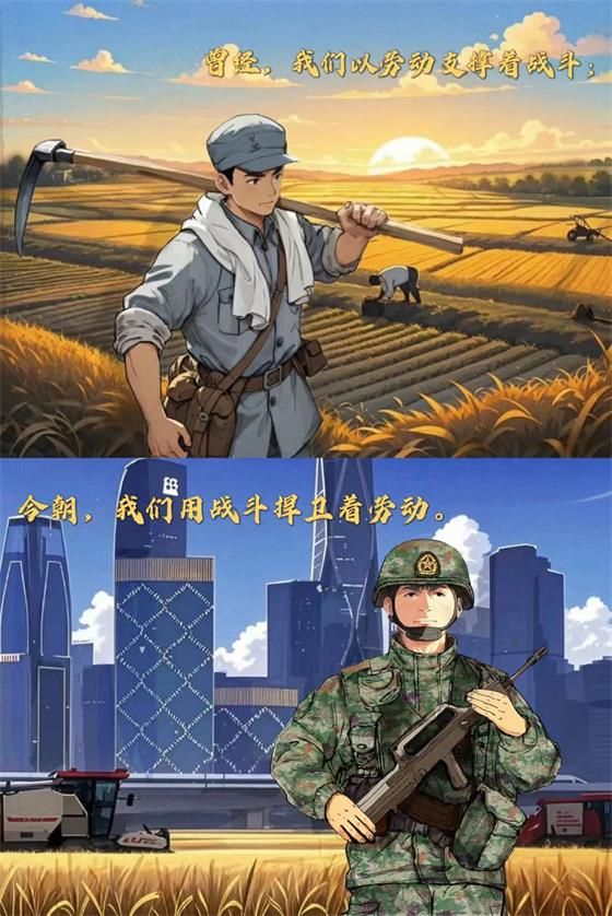 军人是特殊的劳动者,“执干戈以卫社稷”的天职,决定了他们要以为国为民创造和平为己任,捍卫国家安全与稳定,守护人民幸福和安康。伴随和平而来的粟谷飘香、万家灯火、举国繁荣,恰是颁给革命军人最好的劳动“奖章”。