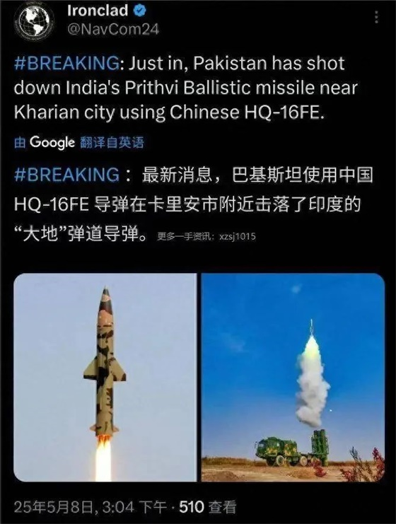 让我们把时间拨回5月8日下午。多家巴媒报道称,巴军HQ-16FE系统拦截了一枚疑似"大地"战术导弹。