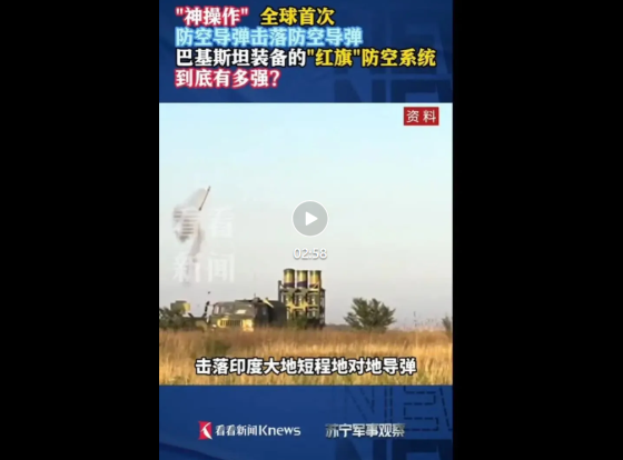 2025年5月9日,巴基斯坦军方宣布,使用中国制造的红旗-9BE防空系统,成功拦截印度S-400防空系统发射的40N6E远程防空导弹。这是全球首次实战中地空导弹拦截地空导弹的案例。