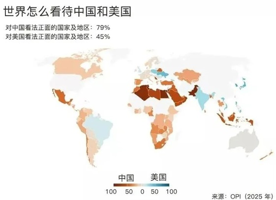 据美国《新闻周刊》5月14日报道,知名民意调查机构Nira Data发布的《2025年民主感知指数》显示,在接受调查的100个国家及地区中,79%对中国好感度大于负面感受,这一比例不仅首次超越美国,而且碾压美国的45%。