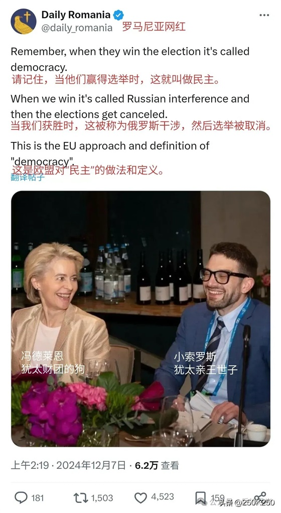 索罗斯和小索罗斯、冯德莱恩干涉了罗马尼亚的选举。