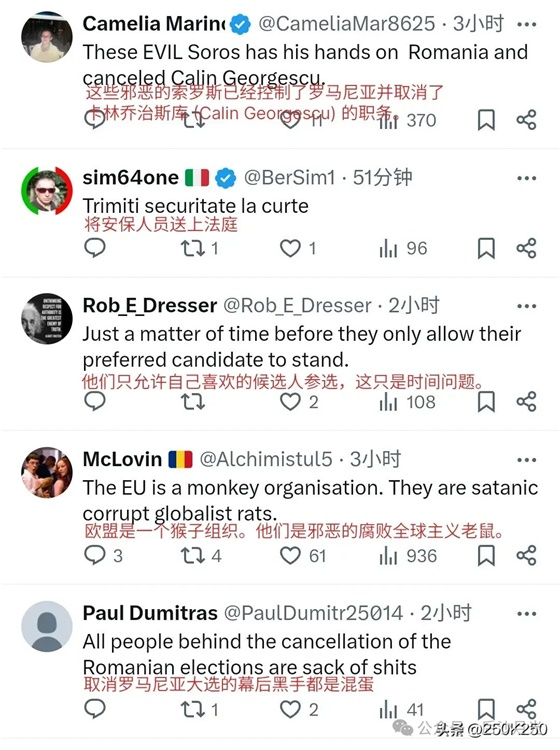 罗马尼亚网友早就在痛骂索罗斯和小索罗斯、冯德莱恩这些人了,还在两人身上写上了“注解”。