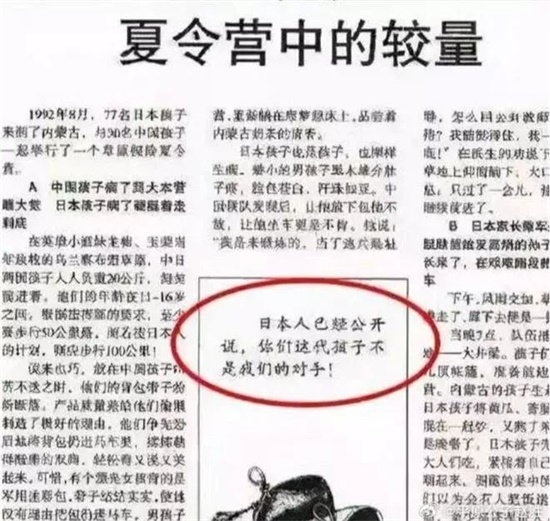 三十年前,有篇奇文《夏令营中的较量》,将中日孩子参加夏令营的表现,上升到两个国家兴衰存亡的高度,成为八零后挥之不去的记忆。