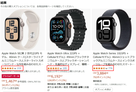 也许你觉得评价太少,但实际上,日本消费者对评价就是这么吝啬,相比之下,苹果手表的评价也没有超过一千。高端的Ultra 2只有区区109个评价,S10也只有779个评价。