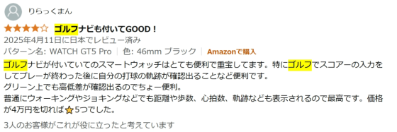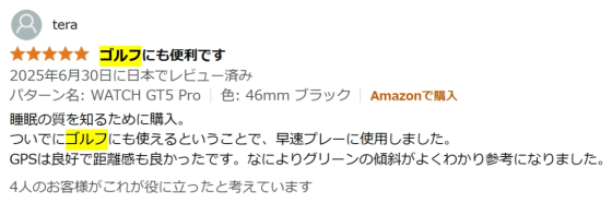 我看了日本Amazon对GT 5 Pro的评价,几乎都跟ゴルフ(高尔夫)有关。
