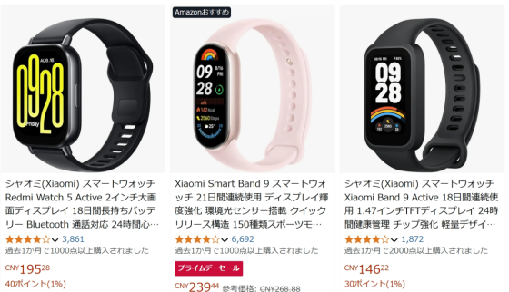 在日本Amazon,超过一千评价的手表类产品,几乎被小米垄断。