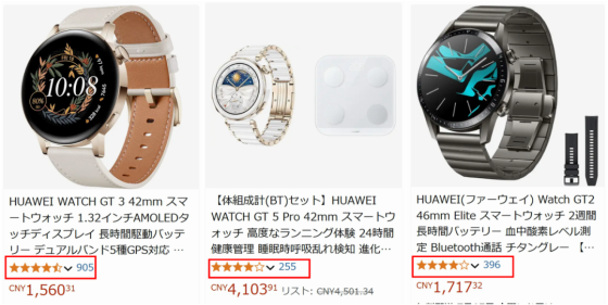 最新的数据还没有披露,但我们可以从另外一个视角观察。亚马逊日本站(Amazon Japan)目前是日本最大的电商网站,打开日亚,查询华为手表,让我吃惊的是,售价高达4103人民币的 GT 5 Pro女款,居然有255个评价。