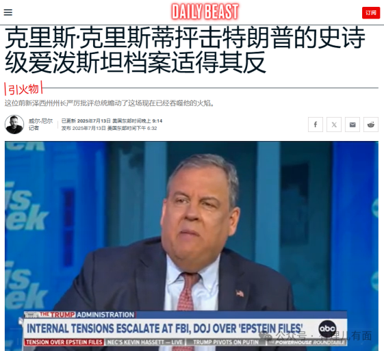 就在MAGA内部起火的同时,外部也开始追债。美国前新泽西州长克里斯·克里斯蒂在电视上痛批:“特朗普玩弄阴谋论,煽动狂热,却从不兑现。他该为这次政治操作负责。”