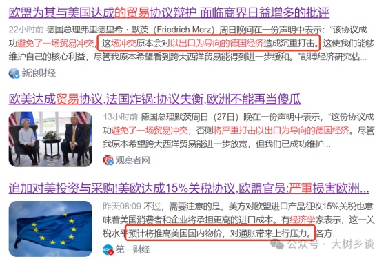 前者的“孤立论”,主要是因为最近美国陆续完成了日韩以及欧盟的初步贸易协议,协议内容对美国非常有利,就觉得美国要完成全球整合了,接下来要对中国发动围堵,然后就开始无限脑补,觉得危机要来了。