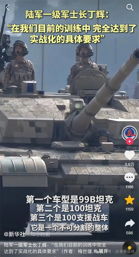 其实单从功能上而言,100式坦克除了名字叫坦克之外,不管是整体架构、研发思路、战术定位、应用场景和常规坦克基本没有关系,火炮不是主要武器而更多用于紧急状态下自卫,真正名字或许应该称之为重型前线火力侦查指挥车比较合适,这一点从“兵王”丁辉的访谈中也能看出来。