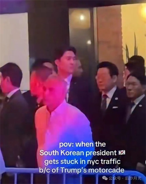 韩国总统李在明也被“拦下,在交警指挥下,他站在一群准备过红绿灯的人群中,显得手足无措。