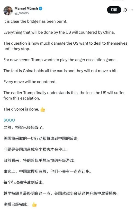 我之所以带大家重温这篇经典,不是因为我个人有啥审丑嗜臭的特殊癖好,而是因为我这两天在X上刷到了几条特别有意思的帖子,发帖人也是一位姓马的大V,名叫马塞尔·明奇(Marcel Münch)。马塞尔是一位欧洲企业家,在中、德、意三国都有产业。虽然粉丝不多只有3.9万,但他早在2009年就开始混推特了,无论身份还是资历,我觉得这老兄都担得起一句“西方大儒”的称呼。