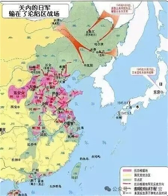 从(1945年)4月到8月之间,解放区的发展异常迅速。由于八路军的进攻,华北的日军从所有的据点和碉堡里不断地被驱逐出来。日军的小部队已陷于无法行动,而大部队则被困在铁路沿线的城市里”、“日本对中国占领区八年间的统治,在8月15日以前已经濒于崩溃了。(见日本历史学研究会编:《太平洋战争史》第4卷第104页,商务印书馆1962年版)