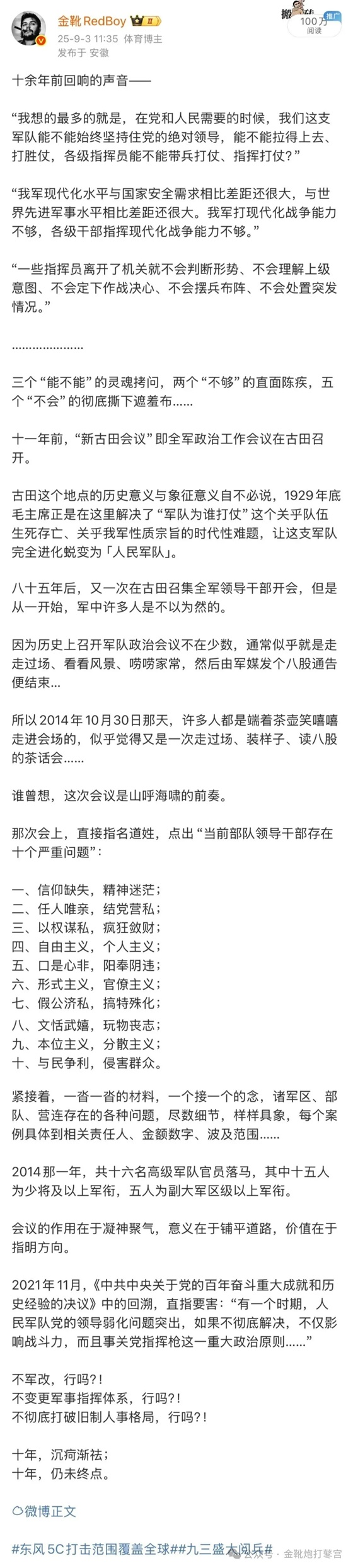 需要团结全党全军的时刻,历史仿佛又回到了1929年那个在古田的冬天,回到了朱老总的那句: