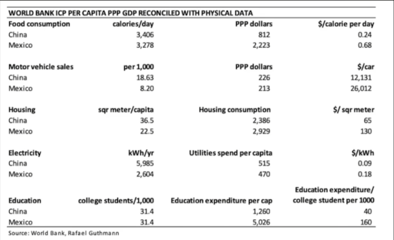 世界银行发布了个数字,说按照购买力平价,我们人均是2.3万美元,比墨西哥的2.2万美元略高。