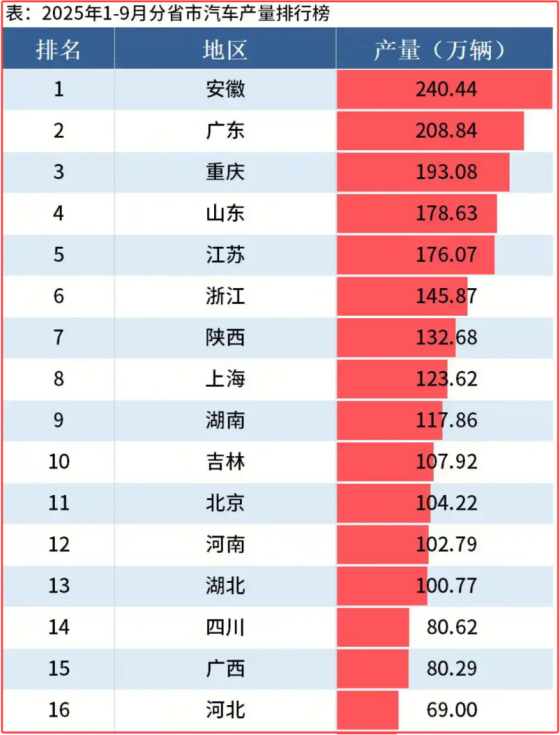 就这样,安徽省的汽车产量,一不小心冲到了全国第一。所以我建议国家邀请欧美投资大佬到安徽的合肥和芜湖看一看,然后他们就会把汽车产业加入到不可投资清单。