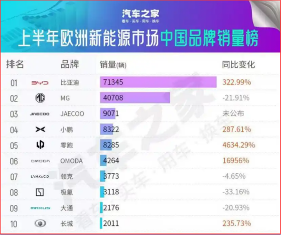 这么高的售价,比亚迪在欧洲的销量还暴增。2025年上半年,比亚迪在欧洲新能源市场销量达到71345辆,同比大幅增长322.99%。今年7月,比亚迪在欧洲的销量超过了特斯拉。