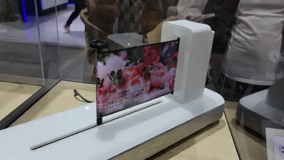 这种柔性可变形的性质,给屏幕应用带来了遐想空间,随便什么不规则不平整的空间,都可以像贴便易贴一样贴贴贴,嵌入这种柔性屏,甚至可以卷起来(小字注释:字面意思的卷起来)。