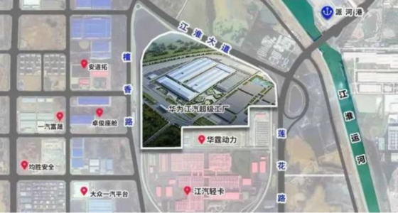 华为与江淮汽车联合打造的超级工厂,就在江淮运河派河港的附近。到时候汽车下线之后,可以直接通过水路运往全国乃至全球各地。福耀玻璃的厂址也在附近。比亚迪的新车,也15分钟就能运到这里。