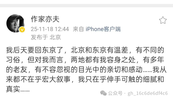 可他忘了,他今天所拥有的一切,从安稳生活到光鲜名利,从跨国出行自由到作品出版机会,哪一样不是 “宏大叙事” 赋予的?