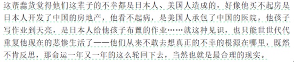 这篇“小作文”上来先说,“题记:崇尚暴力的国家、民族或团体,相比较而言,都是野蛮和落后的,比如晚清的义和团,二战前的德国和日本”。短短几十个字的“题记”就能夹带这么多私货,这篇“小作文”的戾气之重、屁股之歪就在意料之中了。