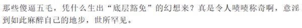 接下来又是大段“傻逼”“蠢货”之类的车轱辘式骂街,我就不写了,总之就是恶臭,太恶臭了,恶臭到无以复加,实在没有写的必要了。