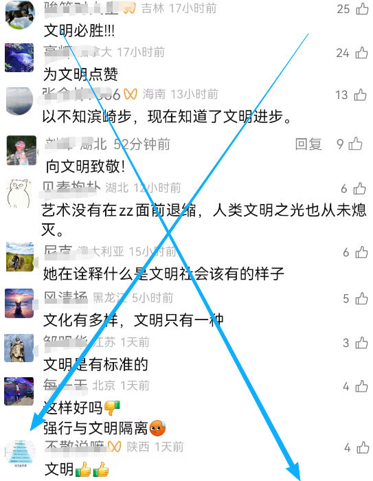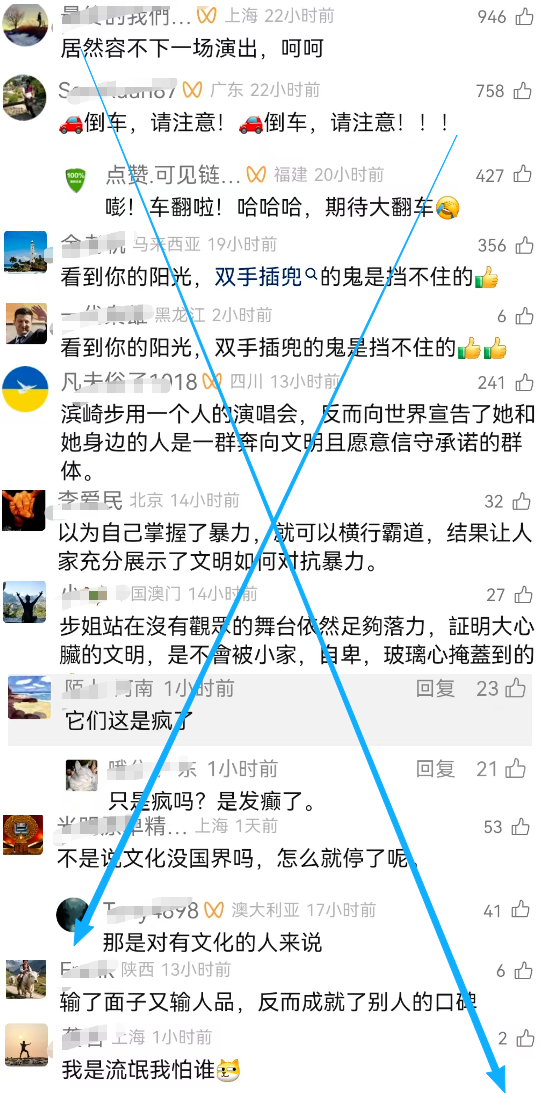 果不其然,评论区里充斥着向滨崎步“致敬”,向所谓的“文明”“致敬”,向所谓的“契约精神”“致敬”的狂吠,我看评论区有人说“感觉就像走进了汉奸窝”,那些人是不是汉奸我不好说,但他们的表演确实很不一般。