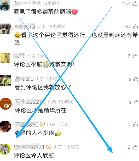 这么辣眼睛的评论区,居然还有群不知是人是鬼的东西在那刷什么“看见了很多清醒的头脑”“评论区很温暖”“看到评论区我就放心了”“清醒的人不少”。我就纳了闷了,到底哪句让他们觉得“清醒”“温暖”了?我只听说过英雄惜英雄,那么多汉奸言论居然能让他们感到很“温暖”,他们和汉奸这么臭味相投,莫非他们也是汉奸?