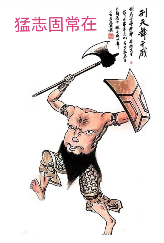 战士,直接指参与军事行动的军人,我过去在西北边疆的军营当过七年战士。战士也泛指从事正义事业者,巴金说“作家也是战士”,我不是作家,是工农兵学业余文艺创作志愿者,我在学做战士。我对战士这个名词深有体会,借用高适“战士军前半生死”的诗句,比喻战士的生存境遇。我常用陶渊明“精卫衔微木,以志填沧海。刑天舞干戚,猛志固常在。”的诗句,激励自己的斗志。精卫是炎帝最小的女儿,名叫女娃,不幸溺水身亡,化为一只名叫精卫的小鸟。每日从山上叼来石子和树枝,誓要填平那夺走她生命的东海。刑天原为炎帝部将,他不仅骁勇善战,而且多才多艺,干戚是古代兵器,干为盾,戚为斧。他在炎帝败于黄帝后,见黄帝摧毁了炎帝的权威,心中燃起复仇的烈火,独自抡起盾和斧,挑战黄帝,被砍了头颅,而没了脑袋的刑天重新站了起来,把胸前的双乳作目,把肚脐当作嘴巴;左手握盾,右手拿斧继续战斗。