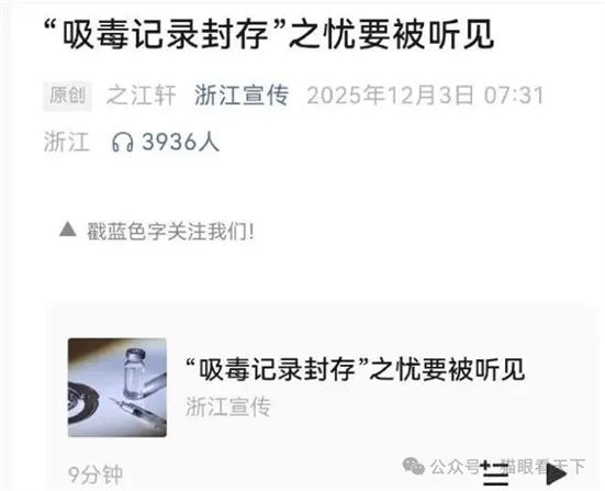 不得不服,这些年,浙江宣传的号,既能写又能打,颇有战斗力。12月3日,浙江省委宣传部官方账号【浙江宣传】以《吸毒记录封存之忧要被听见》为题发文,对近日全网关注的相关吸毒记录封存的修订进行了权威客观的解读。浙宣原文可点击下图阅读。