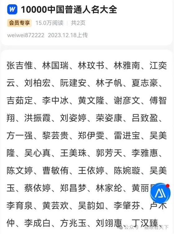 还有,某体培健康研究院公布的研究员姓名中,最强五人组再次上榜,部分研究员的姓名也是来自《10000中国普通人名大全》。