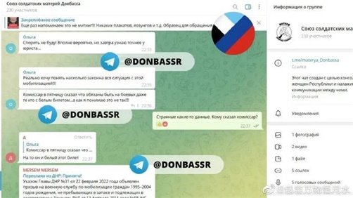电报群的管理员在群里面号召顿巴斯妇女们分享家中被兵役动员的男子的情况,重点是发布了“3月14日12:00前(北京时间17:00)将在顿涅茨克市中心政府大楼前集会”的虚假消息。