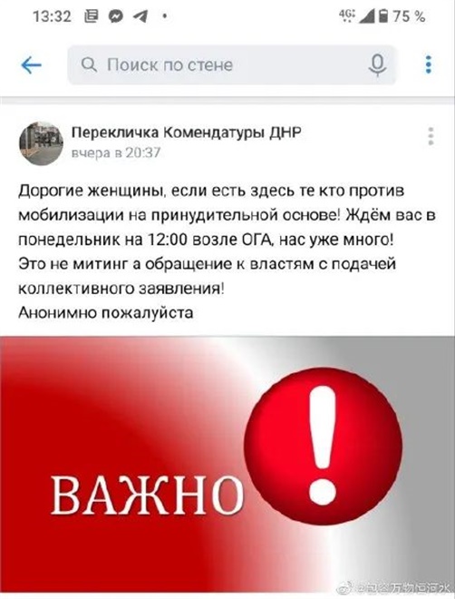 电报群管理员欺骗顿涅茨克人称“举行集会了解动员者的命运,并要求政府与乌克兰和平相处。”