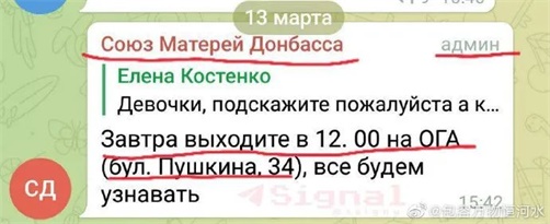 根据曝光的聊天启示,很明显就其目的就是把顿涅茨克母亲们在3月14日12:00前吸引到顿涅茨克市中心政府大楼。
