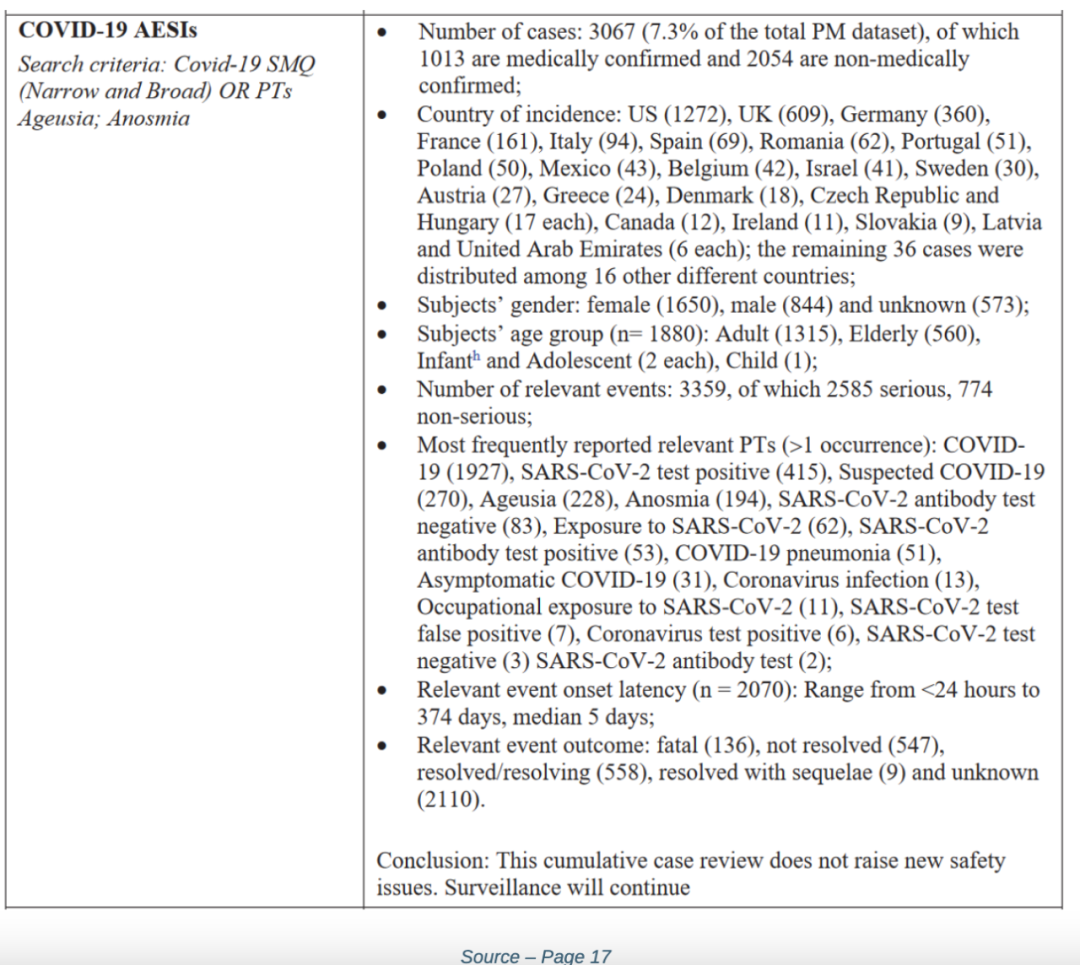 而辉瑞得出结论:“这种累积案例审查不会引发新的安全问题”。